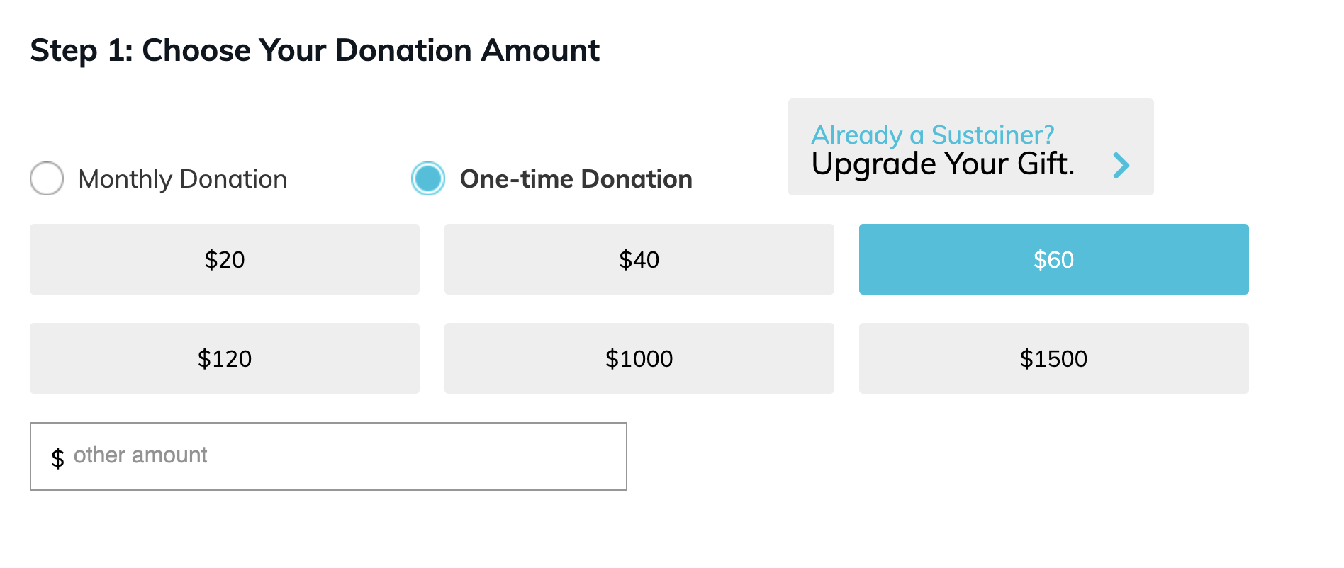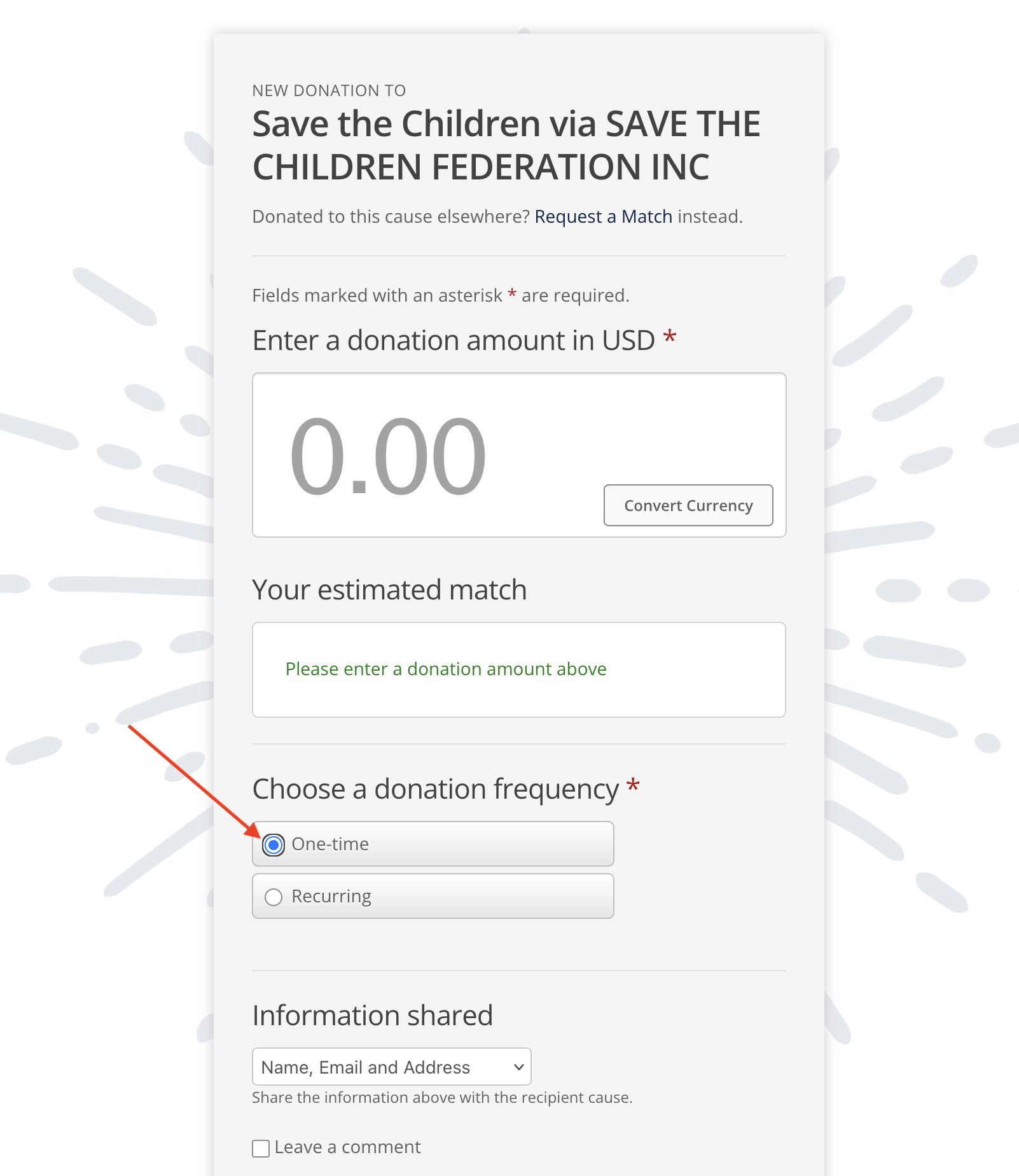 Fill out the form; make sure you click the One-time option. Feel free to share as much or as little information in the dropdown as you like.