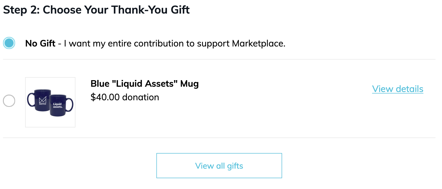 It is up to you if you want a gift as part of your donation. I'm a big fan of their T-shirt myself.